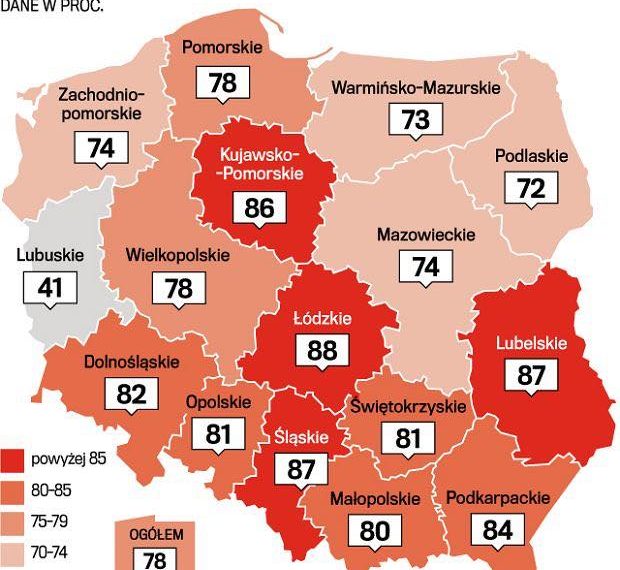 Największa mobilizacja jest w województwach: łódzkim (88 proc. placówek), lubelskim i śląskim (po 87 proc.).