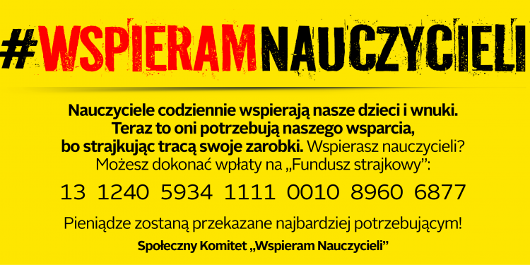Tego dnia został też uruchomiony specjalny rachunek bankowy, na który będzie można dokonywać wpłat na „Fundusz strajkowy” ZNP na rzecz wszystkich protestujących pracowników oświaty: