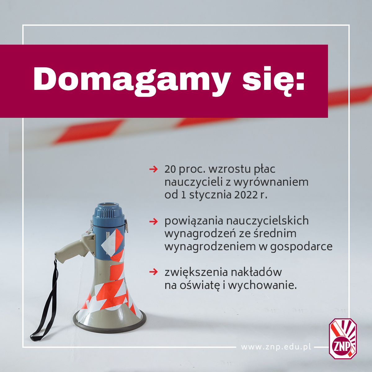 II. Związek Nauczycielstwa Polskiego stoi na stanowisku, że podwyżka wynagrodzenia zasadniczego nauczycieli musi nastąpić od 1 stycznia 2022 r. i musi się wiązać ze zmianą nowelizacji ustawy budżetowej państwa w zakresie konieczności zwiększenia kwoty bazowej dla nauczycieli i zabezpieczenia środków finansowych na realizację podwyżki.